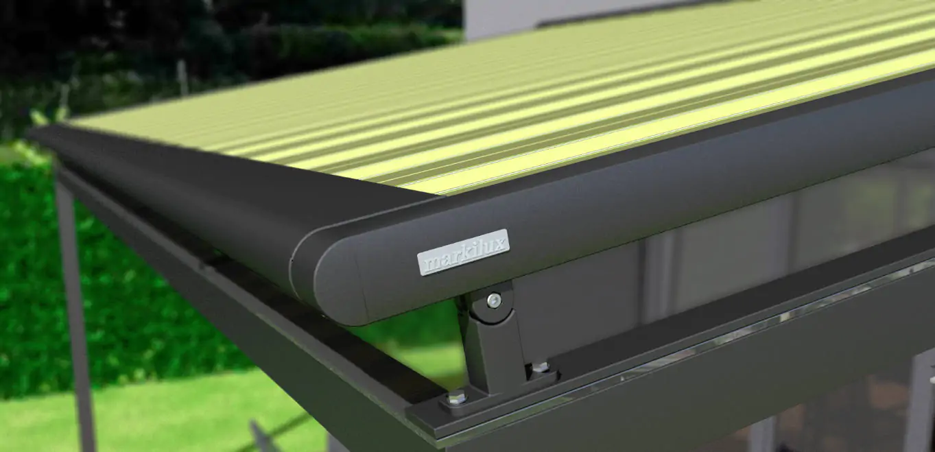 The award-winning Markilux 8800 is designed for larger roof areas, including conservatories and angled glass canopies. Featuring a powder-coated aluminium frame with rounded cassette and angular guide tracks, this system effectively minimises heat while maintaining a contemporary aesthetic.