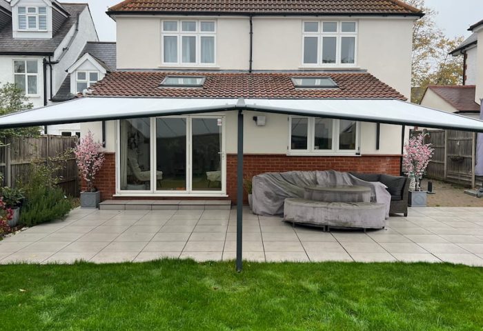 From a quiet location close to Coulsdon Manor Golf course we were invited to provide a shade solution for a large courtyard style patio.